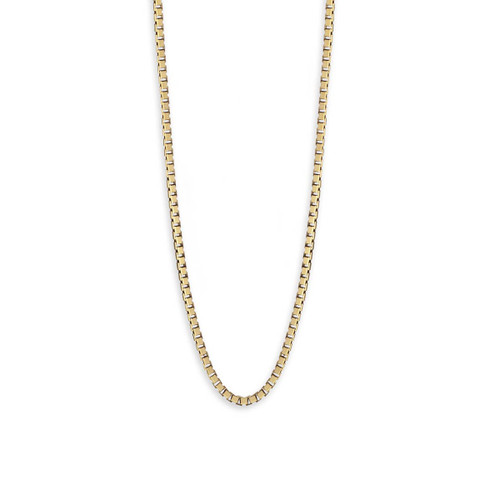 14k Gold, 1mm, Standard Box Chain with spring ring closure.  High polish finish.