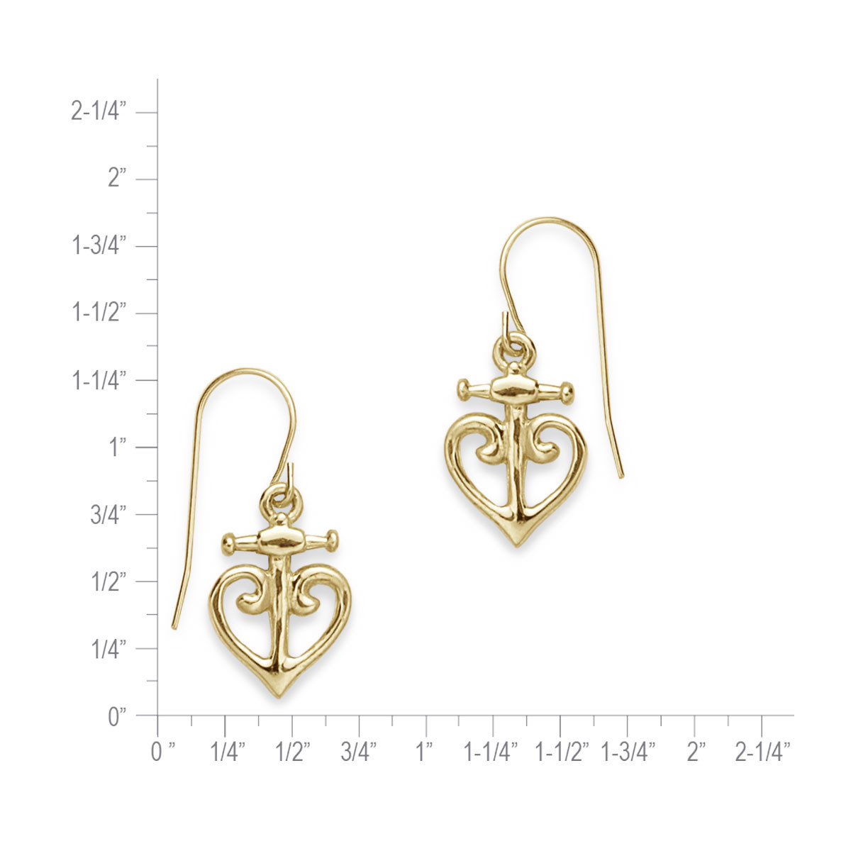 Our 14k Gold Anchored Heart Earrings combine the strength and dependability of the mighty anchor with the love and devotion of the kindred heart. Masterfully carved and polished to perfection. A beautiful reminder of love and support. A perfect match to our Anchored Heart Pendant.