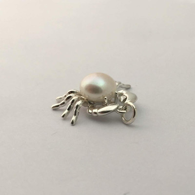 Our sweet little Crab pendant is something to sea! This cute little guy carries a snow white Freshwater Pearl, and is intricately carved in 14k Gold. Measures 7/8" wide, 1" long including ring, and 3/8" high. Chain sold separately.