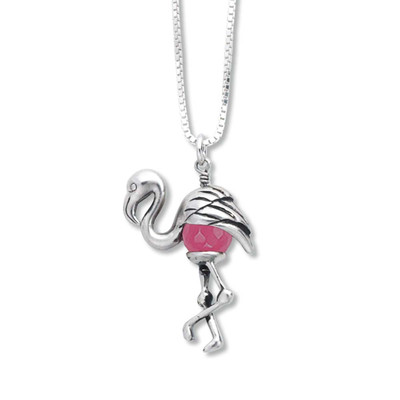 Our fully dimensional 14k Gold Flamingo pendant is whimsical and fun! Our artisans used a genuine Pink Jade gemstone to bring the flamingo's natural color to life. 1" wide, 1 1/2" tall and 3/8" deep. Chain sold separately.