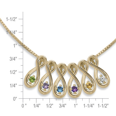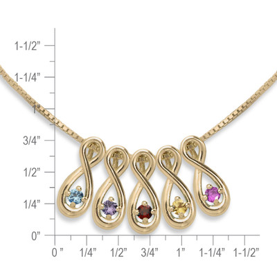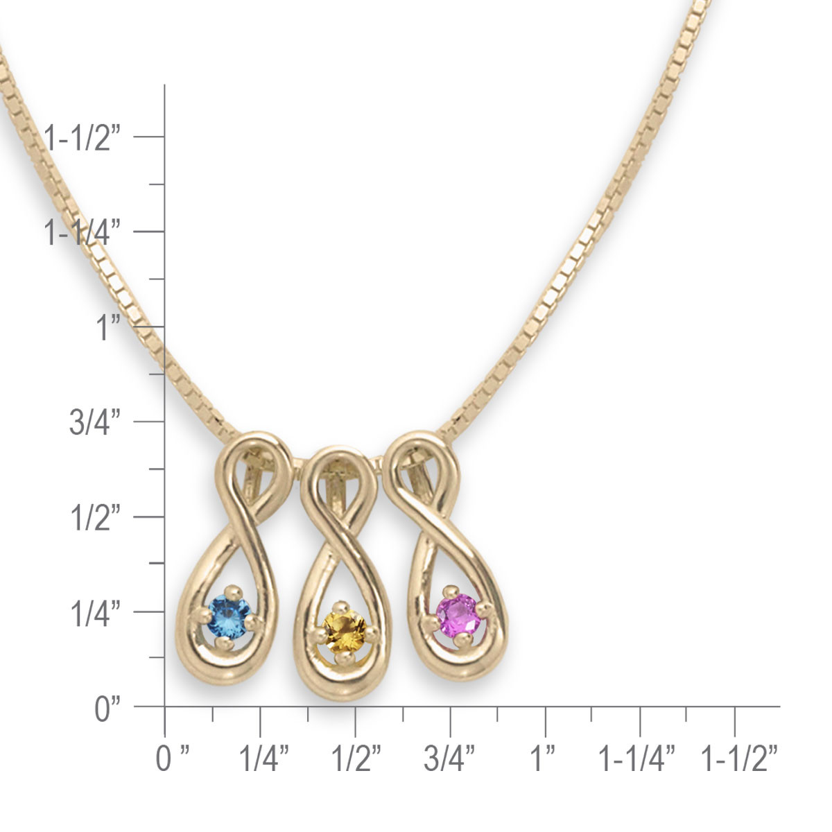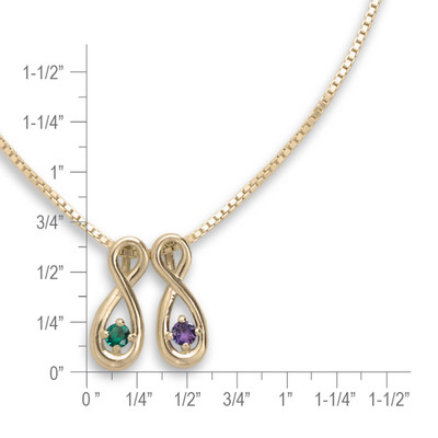 Family is where life begins and love never ends. Our 14kt Gold Infinity Necklace is a symbol of just that. Each infinity symbol is hand set with a 3mm faceted genuine or lab created gemstone. Infinity is 1/4" wide, 11/16" tall and 3/16" deep. Comes laced on an 18" 14kt Gold Venetian box chain. Available in 12 birthstones. Choose your 3 birthstone months.