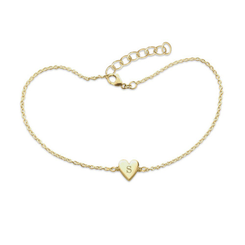 A timeless design, our 14k Gold Heart Bracelet can be engraved with an initial, adding a personalized touch. This charming piece makes a thoughtful gift or meaningful keepsake, combining style with sentiment. Heart measures 1/4" width, 1/4" height & 1/16" depth. Bracelet measures 7-1/2" length, plus a 1" extender chain, allowing the bracelet to fit up to 8-1/2" wrists. Add your engraving below.