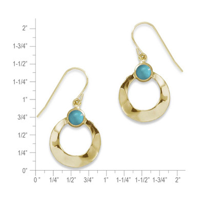Add a touch of nature's beauty to your everyday look with our 14k Gold Moonglow earrings with hand-set genuine Green Aventurine stones. The combination of genuine stones and handmade hammered texture in a casual silhouette is a perfect addition to her collection. Earrings measure 1 7/16" length with fish hook ear wires, 3/4" width & 3/16" depth. Due to Mother Nature's whim, genuine stones may vary slightly in color.