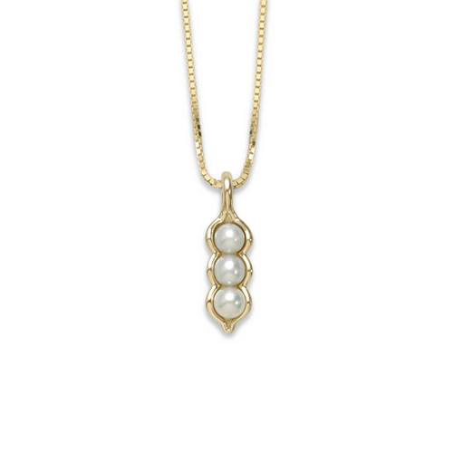 Celebrate the beauty of motherhood with our 14k Gold Peapod Pearl Pendant, a meaningful symbol of love, family, and connection. This delicate pendant features genuine freshwater pearls nestled in a handcrafted Sterling Silver peapod — each pearl representing a cherished child or loved one. Choose 2 to 4 freshwater pearls below. Pendant with 2 pearls measures 3/4" length, Pendant with 3 pearls measures 7/8" length, Pendant with 4 pearls measures 1-1/16" length. Chain sold separately.