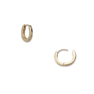 A twist on a classic style, our 14k Gold Zoe Huggie Hoop earrings features clean lines and defined edges for a sleek, modern look. Their unique design brings a hint of edge to any outfit. Hoops measure 11/16" diameter with 1/4" thickness with posts & easy to use hinged construction.