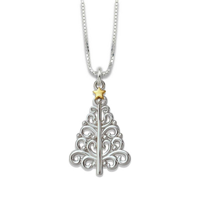 Sterling Silver & 14k Gold Filigree Christmas Tree Earrings