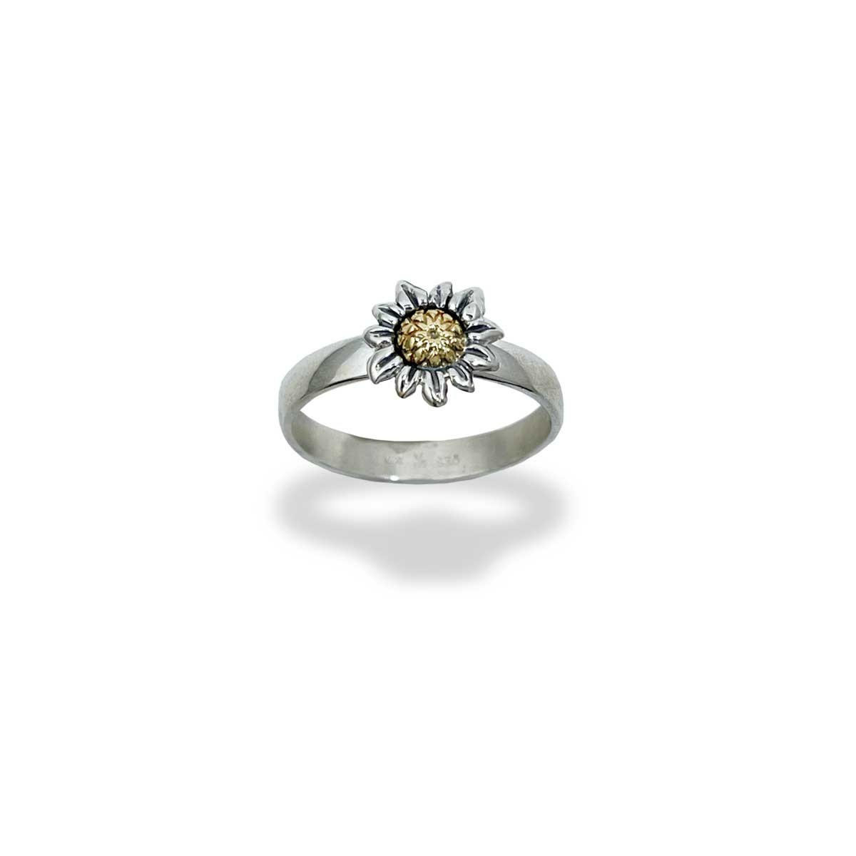 Sterling Silver & 14k Gold Petite Sunflower Ring