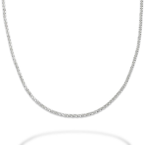 A radiant Sterling Silver necklace chain glistens with sparkling facets, catching the light beautifully with every subtle movement.  Perfect worn on its own, layered, or with a favorite pendant.  Measures 2.1mm wide and available in 16" or 18" length.  Choose length below.