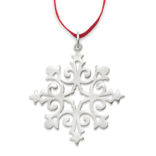 Angel wings symbolize the uplifting power of love, harmony, and guidance. Our 2024 Snowflake design is artfully crafted with intricate motifs that represent these ideas in a meaningful, collectible gift to treasure forever. Each ornament comes with a red ribbon for hanging. Explore our entire ornament collection and choose a year that holds special meaning to you. Dimension: approximately 2" diameter, double-sided.