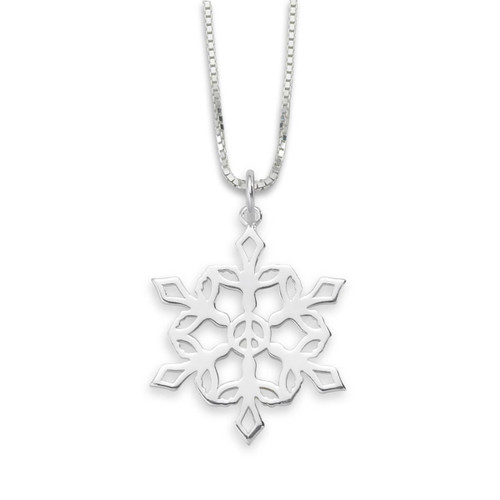 As snow falls gently from the sky, a dove takes flight—bringing with it a promise of peace. Graceful doves frame a centered peace sign creating a beautiful snowflake design Pendant. Handcrafted in Sterling Silver, our 2025 Dove of Peace Snowflake collection captures the quiet beauty of winter while carrying a timeless message of love and serenity.
