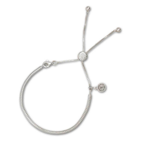 Add your favorite charms to our Sterling Silver Bolo Bracelet! Simply open the lobster claw and slide on your charms. Complete with a lariat closure this charm bracelet is easy to assemble and effortless to put on your wrist. One size fits most wrists, closure adjusts to size. Charms sold separately.