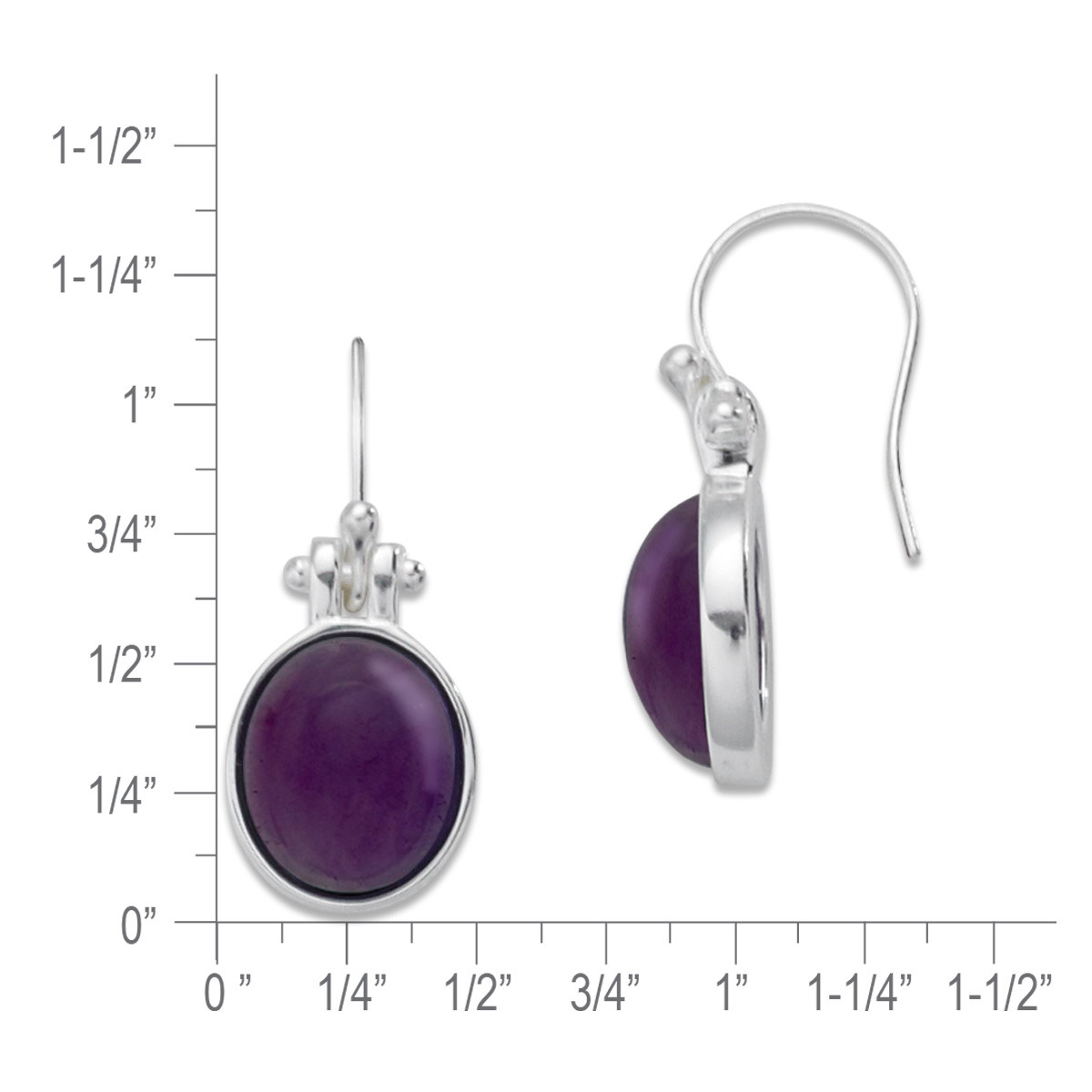 Graceful and timeless, our Amethyst Cabochon Earrings feature smooth, polished genuine Amethyst stones that glow with a soft, natural radiance. Hand-set in Sterling Silver and suspended from comfortable fish hook wires, they offer effortless movement and everyday elegance. Earrings measure 1-1/8" length, 1/2" width.
