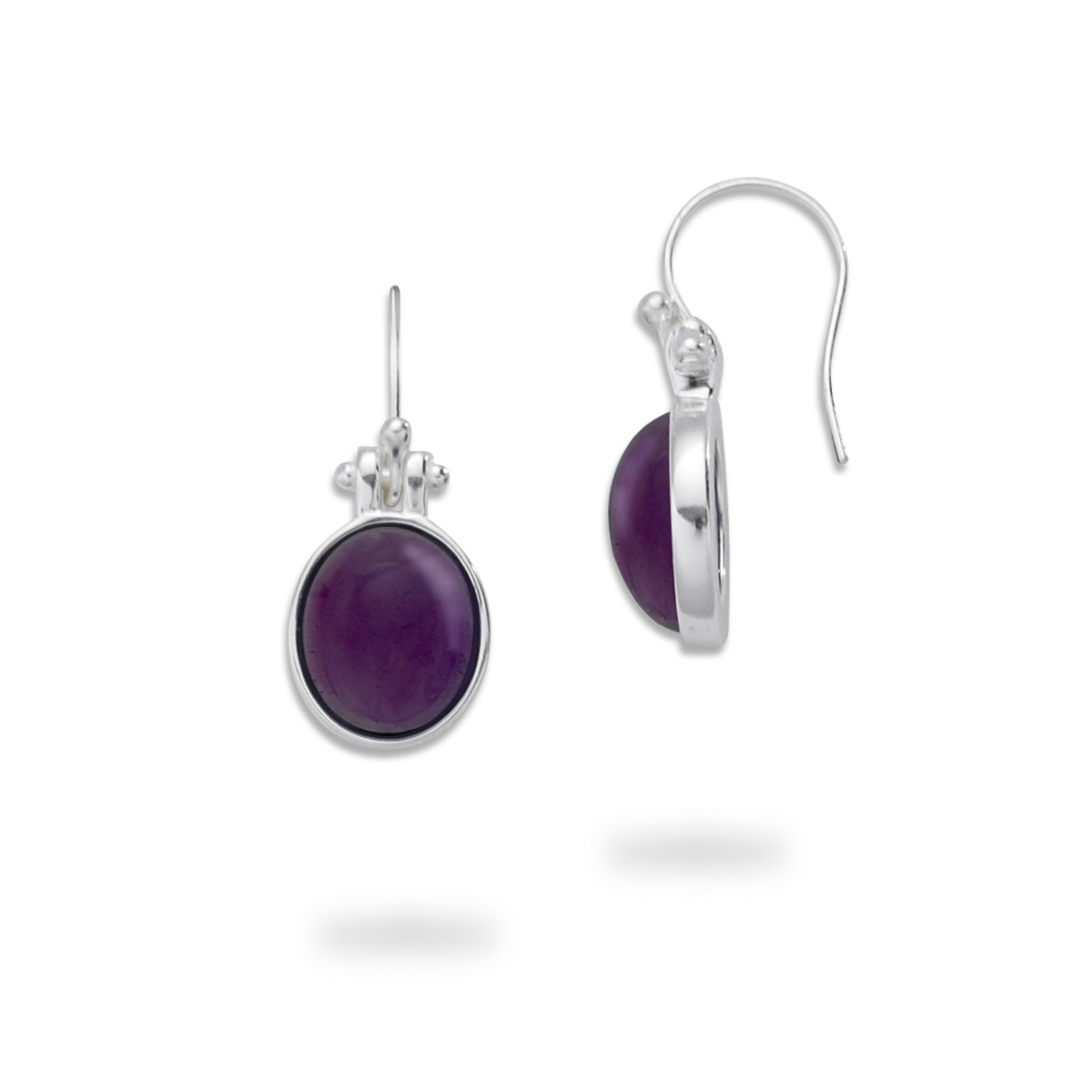 Sterling Silver Amethyst Oval Cabochon Earrings