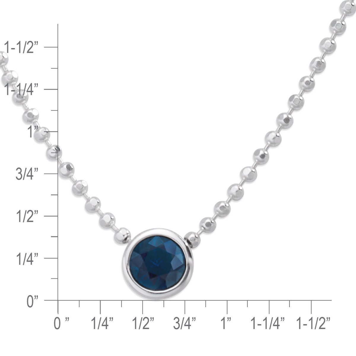 Radiating timeless elegance and refined simplicity, our Sterling Silver Bezel Set Sapphire Necklace celebrates the beauty of classic craftsmanship with a modern twist. A 2.3 carat genuine Sapphire is hand-set in a smooth bezel setting that enhances the stone’s deep blue hue while offering a sleek, contemporary silhouette. Pendant measures 7/8" diameter and is laced on a 2MM faceted bead chain in 18" length with 2" extender and lobster claw clasp.