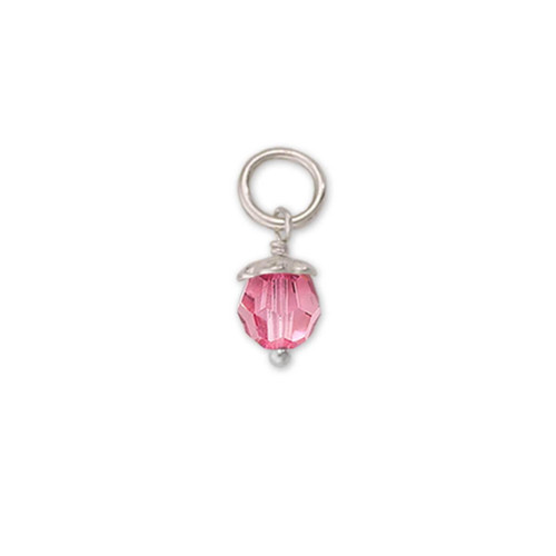 Add a little bling to your favorite charm bracelet or charm holder necklace with our Sterling Silver Swarovski Bling Charm. Featuring a Rose Swarovski Crystal adorned with a Sterling Silver cap with jump ring. 1/2" long including ring, 1/4" wide and 1/4" depth.