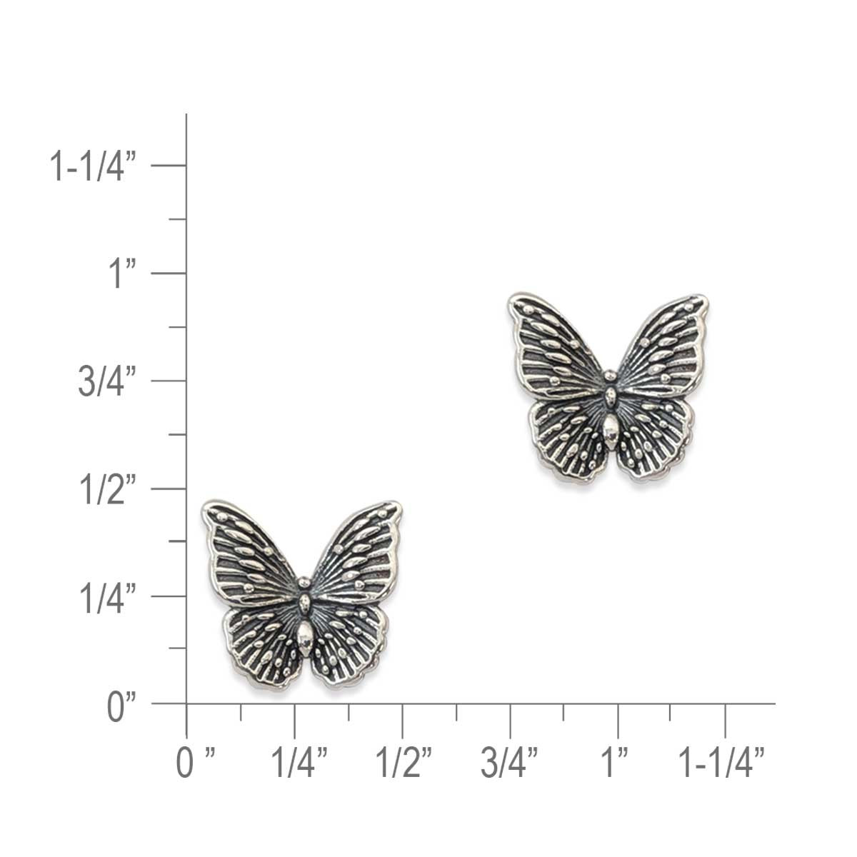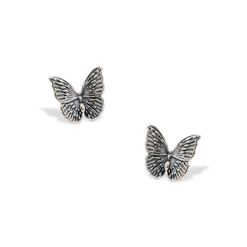 Perfect as a thoughtful gift or a sweet addition to her jewelry collection, our Sterling Silver Butterfly Post Earrings are expertly crafted in Sterling Silver with a subtle light oxidized finish that enhances the intricate wing design. Bringing timeless beauty and a hint of whimsy, each earring measures 7/16" length, 1/2" width, 1/8" depth with posts.