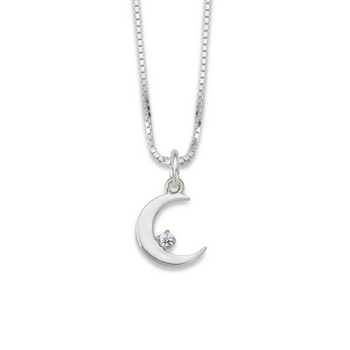 Our Sterling Silver Crescent Moon Pendant holds a sparkling hand-set 0.05 carat Diamond capturing the allure of the night sky. Measuring 3/4" height including ring, 1/2" width & 1/8" depth. Chain sold separately.