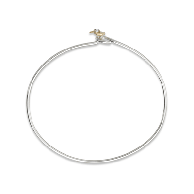 A Sterling Silver Crescent Moon sits atop a Sterling Silver band and holds a sparkling hand-set 0.05 carat Diamond capturing the allure of the night sky. The moon measures 5/16" wide x 5/16" high, and the band measures 1/8" wide. It is available in sizes 5 thru 8. Please choose size below.