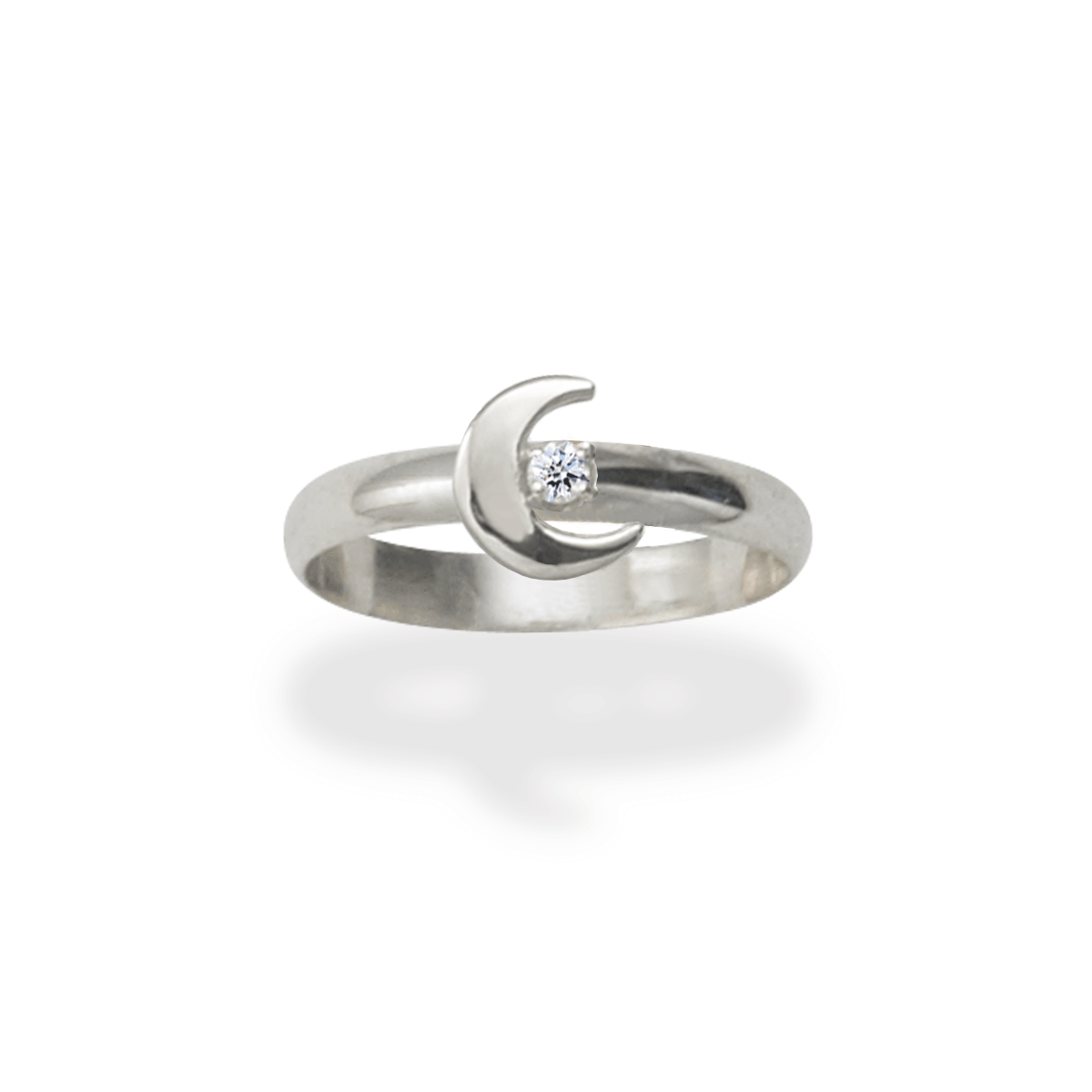 Sterling Silver Crescent Moon Diamond Ring