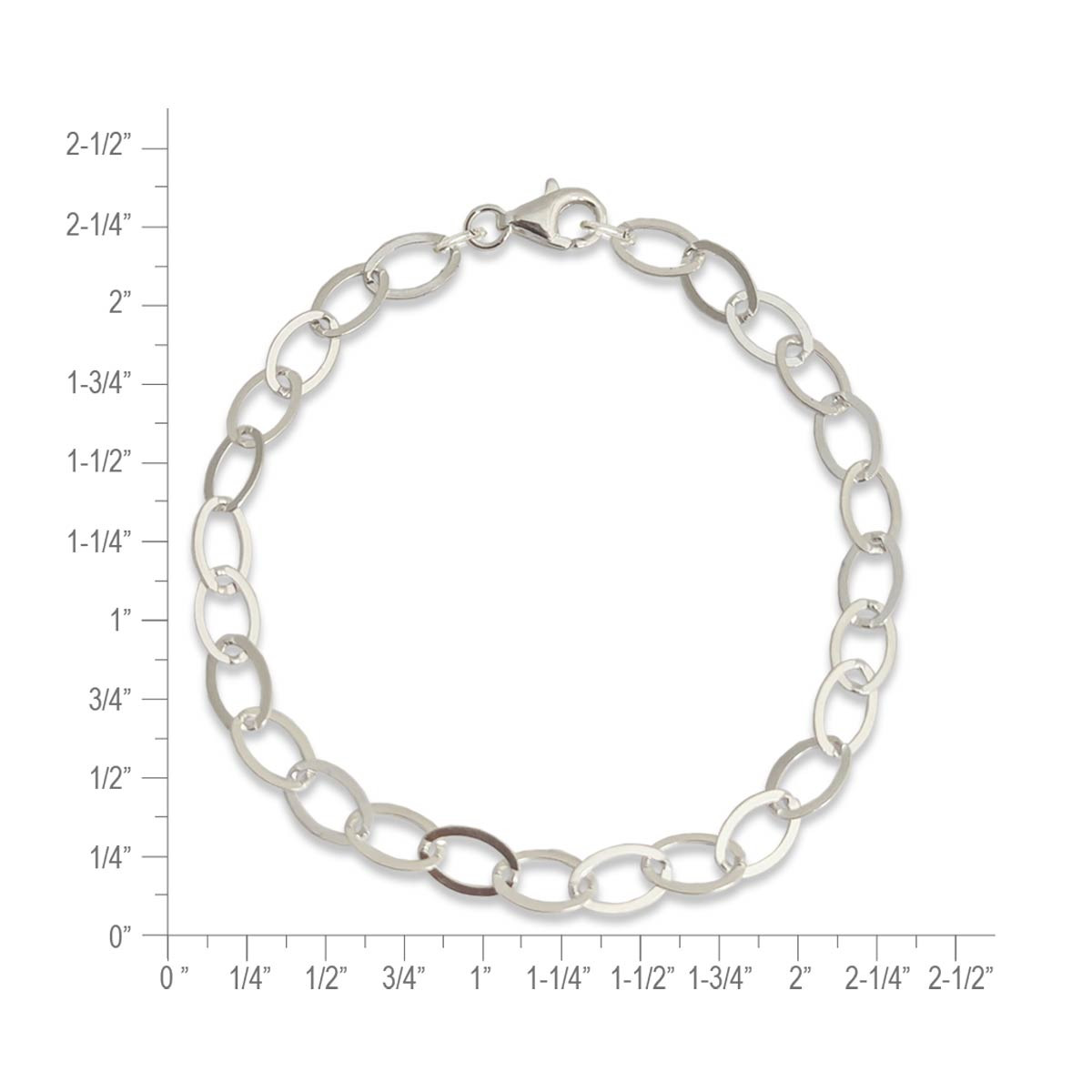 Elevate your jewelry collection with this elegant Sterling Silver Flat Oval Link Bracelet. This timeless piece features interlocking flat oval links (3/16" wide), creating a sleek and polished look that shines from every angle. High polished finish. Available in 7.5" length with lobster claw closure.