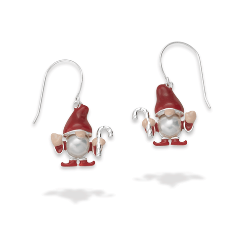 Celebrate the holiday season with our charming Sterling Silver Gnome Earrings, featuring a whimsical gnome design with a classic pointy hat, genuine Freshwater Pearl beard and candy cane accent. Crafted in Sterling Silver with red enamel accents, earrings measure 3/4" wide, 1 3/16" length with fish hook ear wires and 3/8" depth.