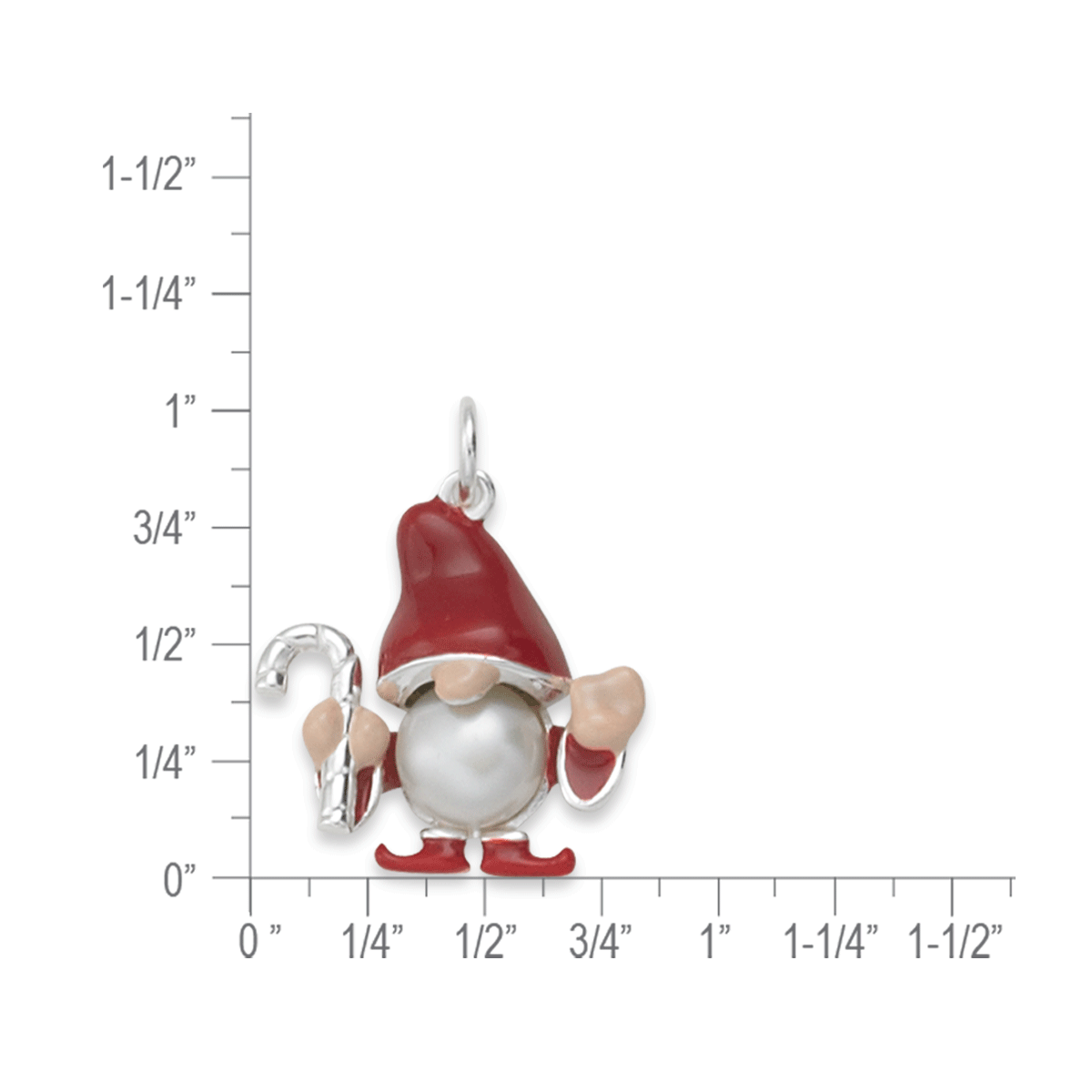 Celebrate the holiday season with our charming Sterling Silver Gnome pendant, featuring a whimsical gnome design with a classic pointy hat, genuine Freshwater Pearl beard and candy cane accent. Crafted in Sterling Silver with red enamel accents, pendant measures 7/8" wide, 1" long with jump ring bail and 3/8" depth. Chain sold separately.