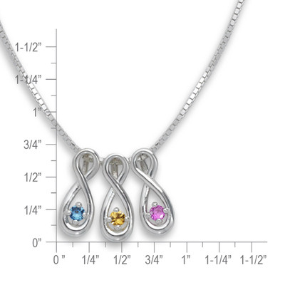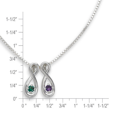 Family is where life begins and love never ends. Our Sterling Silver Infinity Necklace is a symbol of just that. Each infinity symbol is hand set with a 3mm faceted genuine or lab created gemstone. Infinity is 1/4" wide, 11/16" tall and 3/16" deep. Comes laced on an 18" Sterling Silver Venetian box chain. Available in 12 birthstones. Choose your month.