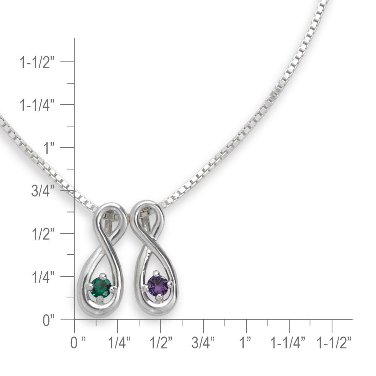 Sterling Silver Infinity Family Necklace 2 Stone on 18" Box Chain