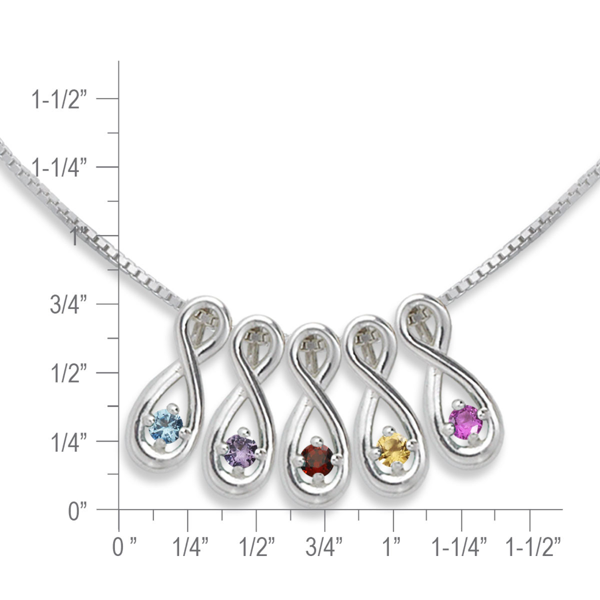 Sterling Silver Infinity Family Necklace 5 Stone on 18" Box Chain