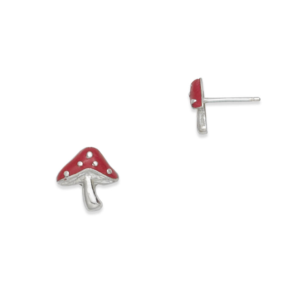 Add a touch of woodland charm to your look with our Sterling Silver Mushroom Post earrings. Featuring a vibrant red epoxy cap, each piece is delicately crafted to capture the playful beauty of nature. Earrings measure 7/16" length, 7/16" width, 1/8" depth with posts.