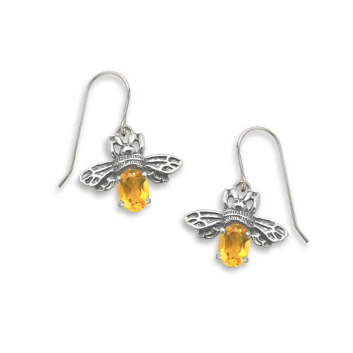 Our Sterling Silver Queen Bee earrings are buzzing with beauty! Detailed wings with hand set genuine faceted oval Citrine golden gemstones. 7/8" wide, 1" long and 1/4" deep.