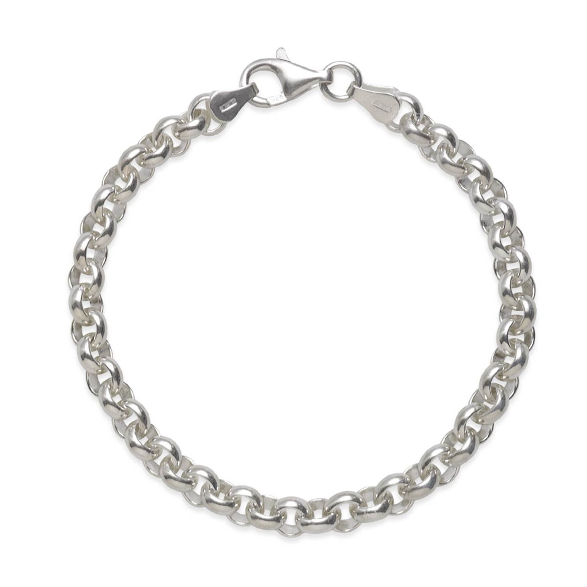 Our Sterling Silver Rolo Chain Bracelet features classic round links (6MM) for a sleek and versatile look. Perfect for layering or wearing solo and is available in 7-1/2" length with a secure lobster clasp.