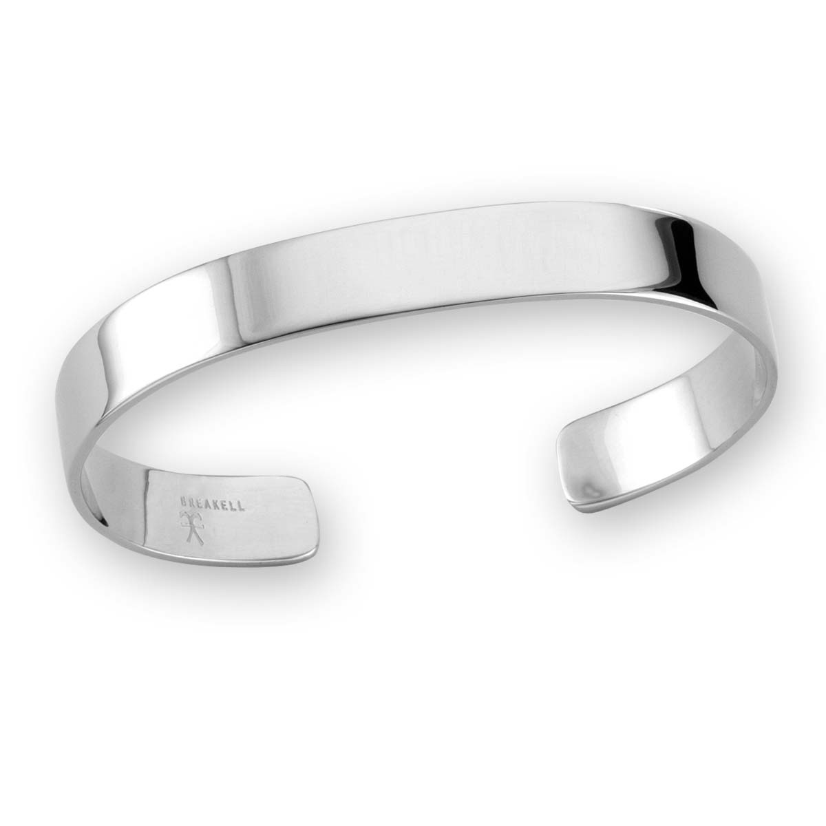 Our Sterling Silver Rugged Cuff is a classic piece for him or her that will stand the test of time. Its high polished broad surface provides a generous platform to personalize. Personalize it up to 9 letters at no extra charge. The cuff is 3/8” wide.
