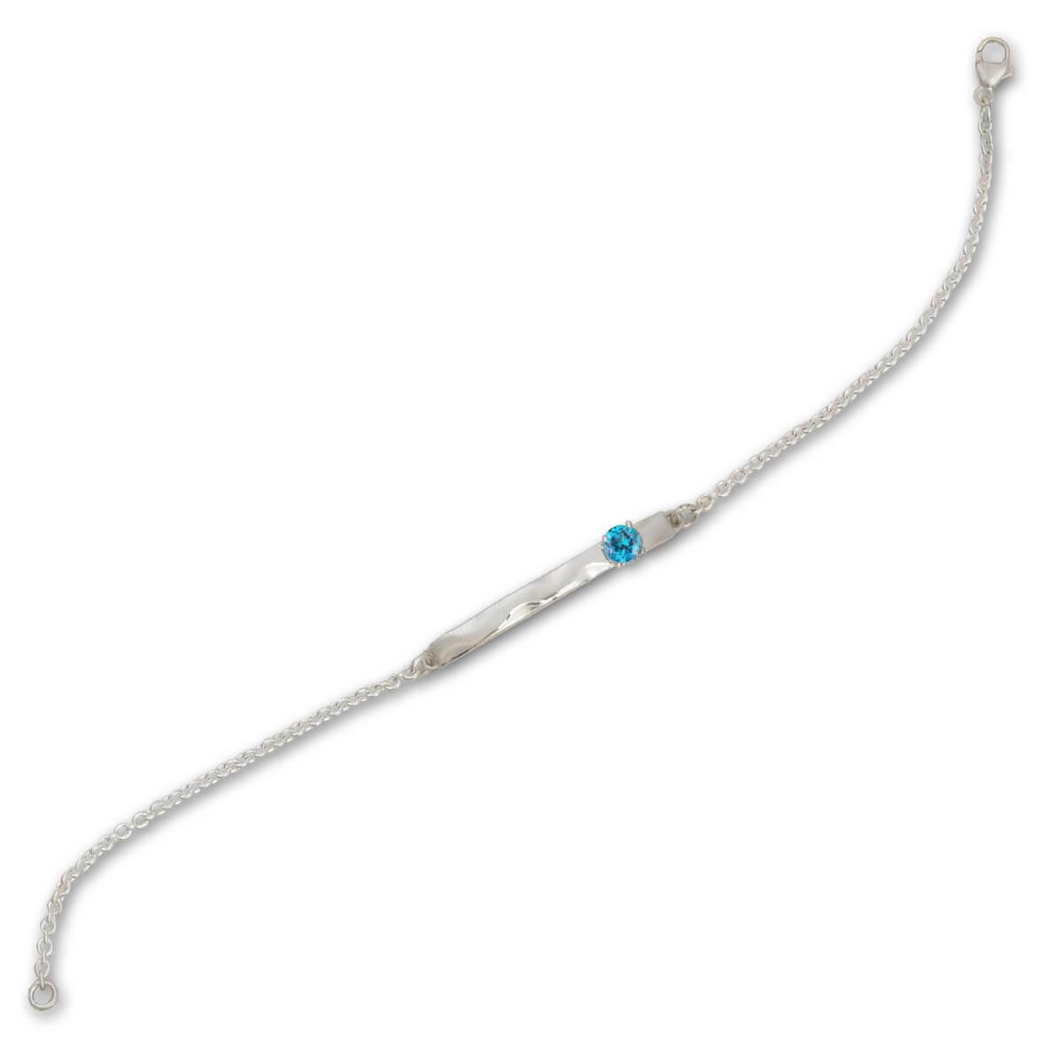 A perfect balance of color and light, softly sculpted in a Sterling Silver bracelet and set with a brilliant genuine Blue Topaz.  Bracelet length is 7 1/2", and has a secure lobster claw clasp.
