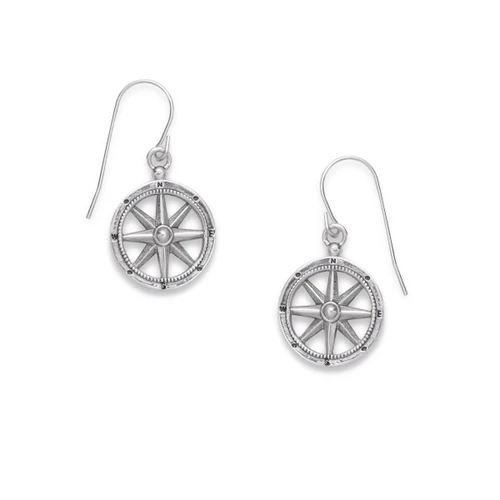 Sterling Silver Stay the Course Compass Earrings