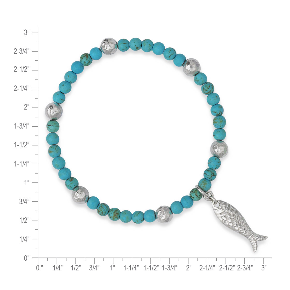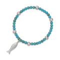 Sterling Silver Turquoise Bead Stretch Bracelet with Fish Charm