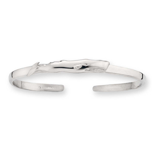 The mighty whale symbolizes strength, spirituality and protection. Our Sterling Silver Whale cuff is a beautiful reminder of these noble traits. 2-1/4" diameter, 1-1/8" opening, 1/4" tall at widest point.