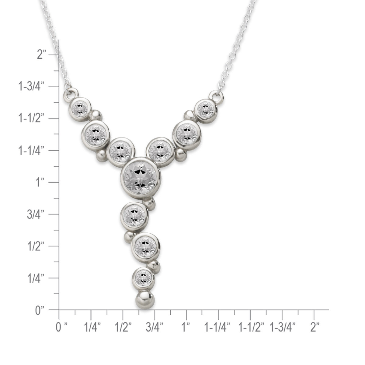 Delicate and playful, our Sterling Silver White Topaz Bubbles Necklace brings a touch of sparkle to every outfit. Featuring 5.25 carats total weight genuine White Topaz stones set in a cascading “bubble” design, each gem catches the light beautifully, creating a subtle shimmer that feels both modern and elegant. Measures 1-3/4" length, 1-1/4" width, in 18" length with 2" extender for a versatile fit.